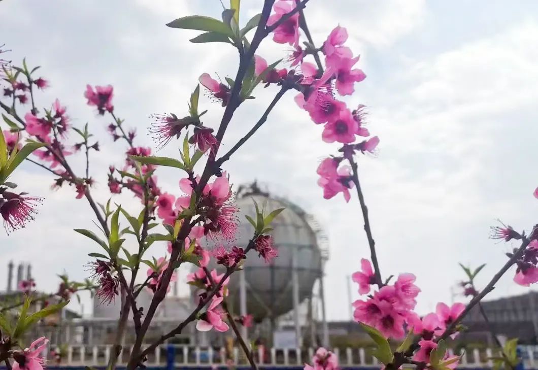 最初的日子,它只是安靜地扎根。充裝泵運(yùn)轉(zhuǎn)的震動順著地面?zhèn)鬟^來,它便借著這股勁兒往深處扎根,枝干一年比一年粗壯;師傅們完成產(chǎn)品裝車,在樹蔭下歇腳時,總會順手打一桶水來澆在它根旁;冬天第一場雪落下來之前,老師傅會找些舊草繩,一圈圈纏在它的主干上,嘴里念叨著“小樹也怕冷”。師傅們總打趣說,這桃樹怕是把值班室當(dāng)成了家——清晨聽著第一輛貨車進(jìn)站的聲音舒展葉片,夜里伴著最后一盞警示燈的光亮收攏水汽。