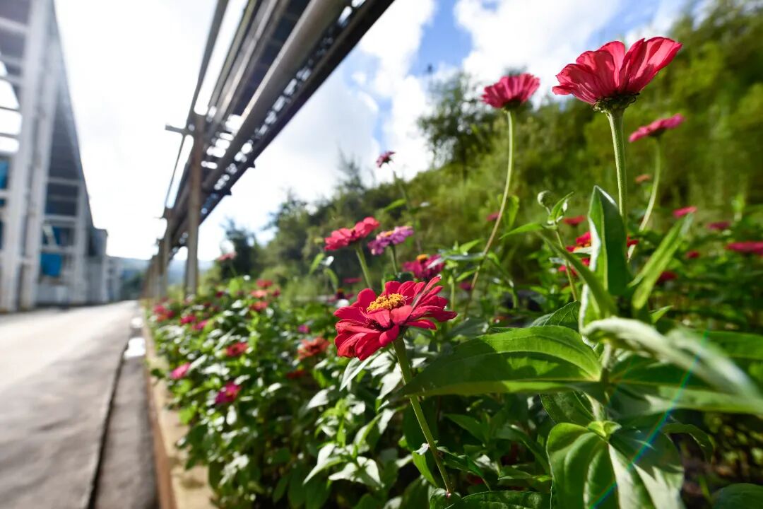 煤棚依舊是那個(gè)煤棚,黑黢黢的煤堆堆得整齊,傳送帶運(yùn)轉(zhuǎn)的聲響依舊是車間的主旋律;混凝土溝也還是那條溝,靜靜流淌著雨水。只是多了這一排百目菊,便仿佛添了些生氣。花開時(shí)節(jié),燦爛一片,映著黑黢黢的煤堆,倒也別致。